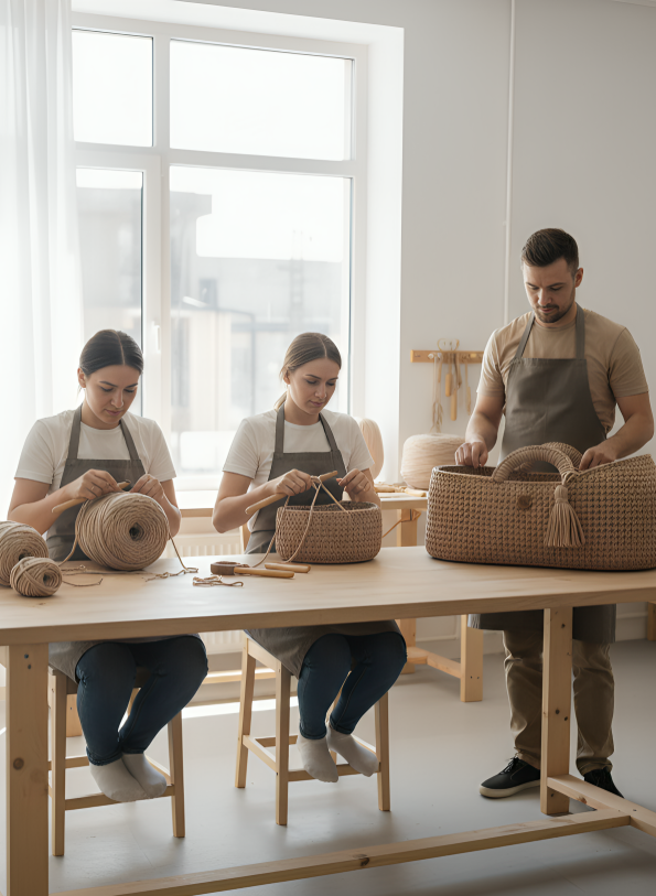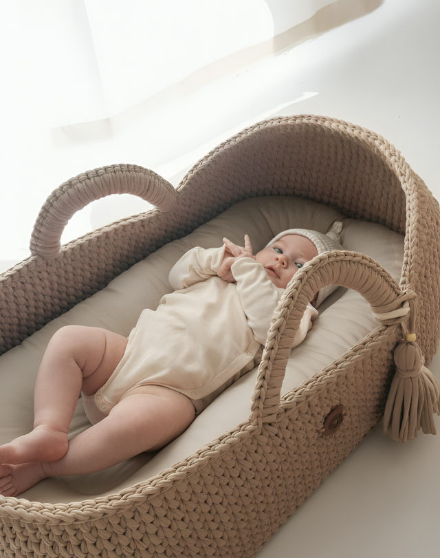 Cet havre de paix est conçu avec des matériaux soigneusement sélectionnés — osier naturel, coton biologique, fibres de coco hypoallergéniques.